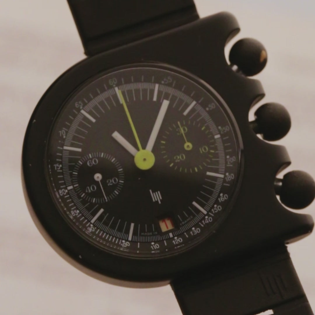 Découvrez la Lip Mach 2000 Chronographe Roger Tallon, équipée du calibre Valjoux 7734, une pièce emblématique du design horloger français des années 1970. Imaginée par le célèbre designer Roger Tallon, cette montre se distingue par son boîtier asymétrique audacieux et ses poussoirs noirs en forme de sphères, signatures visuelles devenues iconiques. Son cadran noir mat accueille deux compteurs de chronographe, des aiguilles contrastées et un guichet date à 6 heures, offrant une lisibilité claire et un style résolument seventies. Le tout est animé par le robuste mouvement mécanique à remontage manuel Valjoux 7734, réputé pour sa fiabilité et sa précision. À la croisée de l’horlogerie et du design industriel, la Mach 2000 est aujourd’hui considérée comme une véritable icône du design français, recherchée par les collectionneurs pour son esthétique avant-gardiste et son importance historique. Une montre rare et expressive, destinée aux passionnés qui apprécient autant l’horlogerie mécanique que les objets de design devenus cultes.