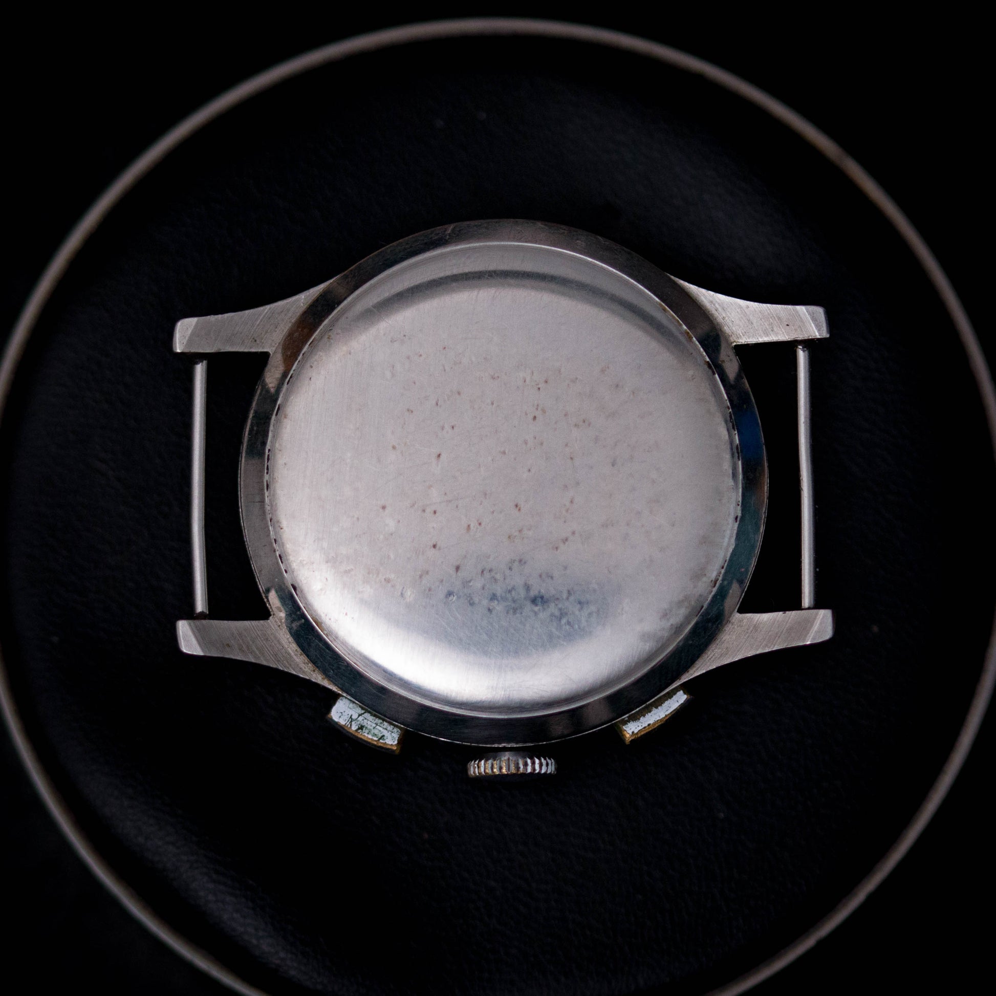 Cette montre est notre coup de cœur pour ce drop de Janvier 2026. Ce chronographe signé ANGELUS est l'essence même du vintage! Une pièce qui vieillit avec les années et devient de plus en plus parfaite à nos yeux. Cette montre est dotée d'un calibre Angelus 215 mécanique révisée en 2025 en dehors des ateliers de nos horlogers partenaires. Nous avons contrôlé et testé ce calibre sur plusieurs jours et dans diverses conditions. Il tient l'heure de façon correcte en affichant une dérive de -30sec/jour ce qui est tout à fait acceptable pour une montre des années 50. De plus son amplitude est d'environ 250°. Esthétiquement parlant la montre affiche de légères traces du temps et c'est tant mieux! Le boitier de 35mm de diamètre est en bon état et ne présente que de légère rayures de surfaces. Les formes originelles sont conservées nous permettant d'ajouter qu'aucun polissage n'a été effectué sur cette tocante. Le verre plexiglass est en bon état. La couronne et les poussoirs de la complication chronographe sont ceux d'origine. A noter, que la complication chronographe est en parfait état d'utilisation. Le fond clipsé est gravé du numéro de modèle "189290" ainsi que de la mention "Angelus Watch Co." nous permettant d'attester qu'il est bien le fond d'origine de cette pièce de collection et daté des années 50. Le cadran est marqué par le temps, proposant une sublime et unique patine beige, arboré de graduations rouges et de 2 sous compteurs rendant la montre excellement équilibrée visuellement. Les aiguilles en acier bleui sont superbes et possèdent leur lume. Nous avons opté pour un bracelet nato beige qualitatif pour venir compléter cette tocante, afin de rappeler les naunces de son cadran. Cette montre est avant tout une montre de collection pour les amoureux du vintage et du savoir faire horloger des temps passés. Elle rejoindra le poignet d'un passionné d'horlogerie qui saura sans nul doute apprécier ses parfaites imperfections.