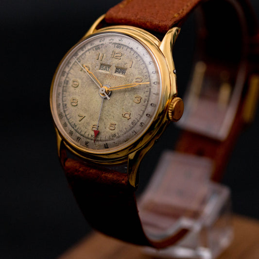 La Zenith Type Militaire Cal. 12‑4‑P est un garde-temps d’une rare élégance, conçu dans les années 1940 pour un usage militaire. Voici ce qui le rend exceptionnel :